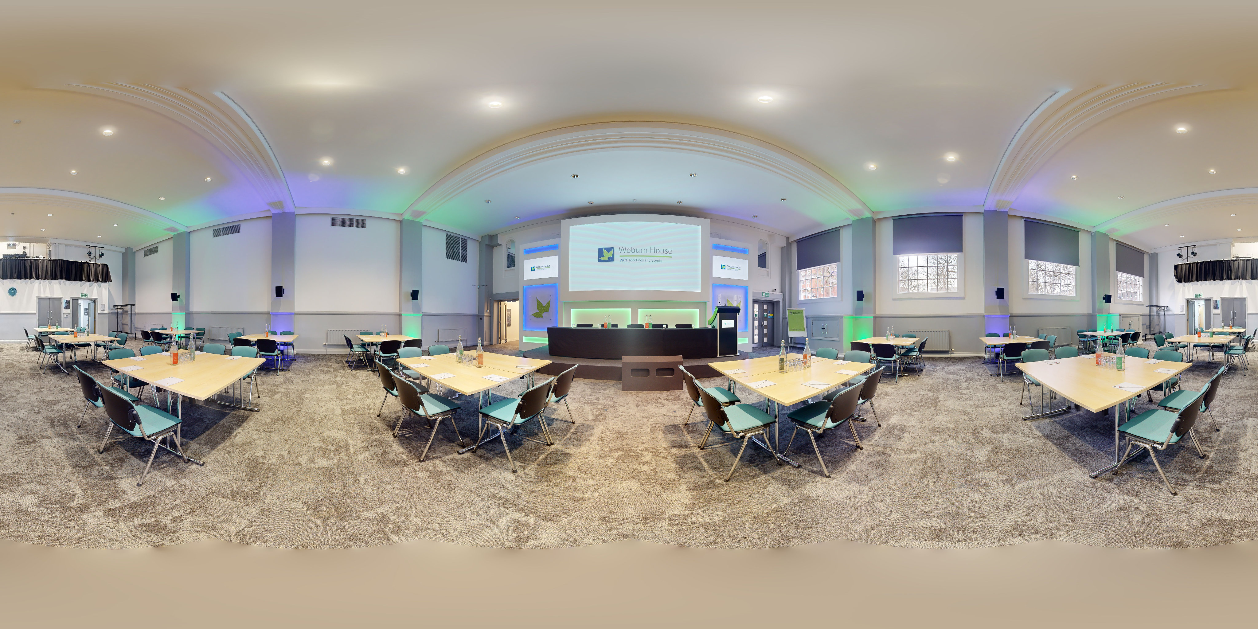 Our Woburn Hall, Euston is our pride and joy. With its ability to be set for a board meeting for 50 one minute, and then laid and lit for dinner for 120 the next, its flexibility makes it the perfect space for meetings, conferences, seminars, event dinners, award ceremonies, AGM’s, lectures and receptions. Located directly next to our Main Reception and the impressive Woburn Foyer it couldn’t be easier for your guests to find and the 2 rooms together provide the perfect space for registration and that arrival coffee and pastry before heading into the event. Large windows allow natural daylight to flood into the room, perfect for those full day meetings. Our Woburn Hall comes with all this included as standard:
